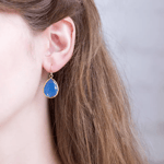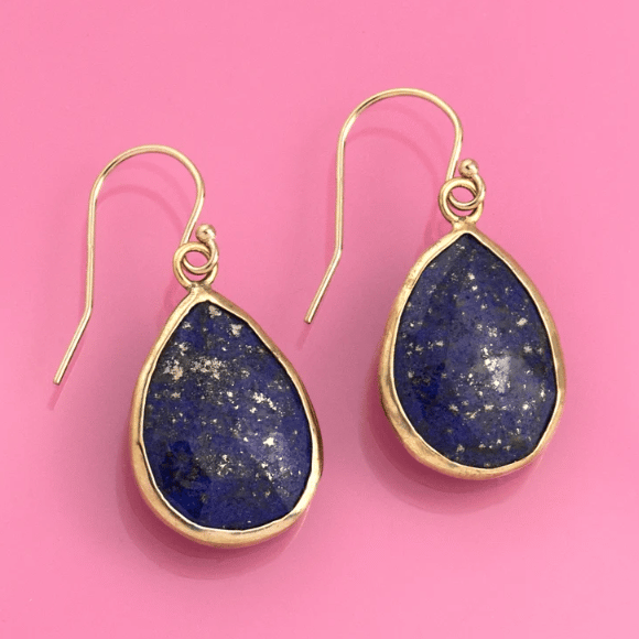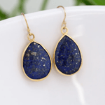Unique Navy Blue Lapis Lazuli Earrings—Genuine Gold Gemstone Hook Earrings.