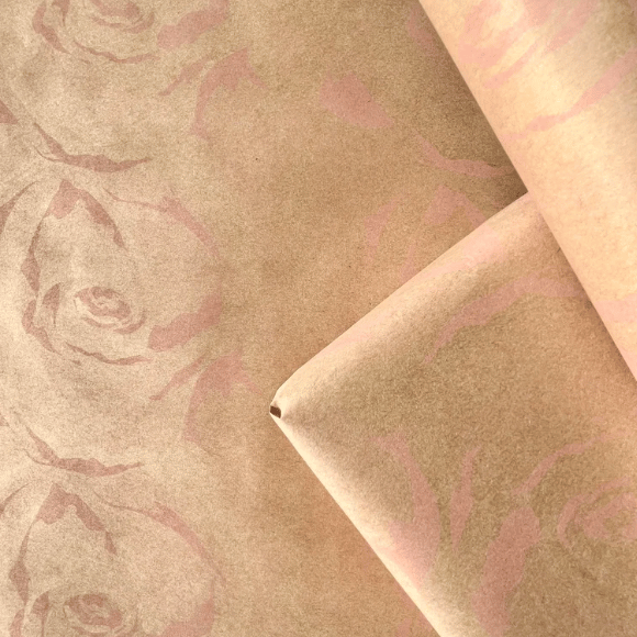 Eco-Friendly Gift Wrapping Paper with Pink Rose Flowers—100% Recycled & Recyclable.