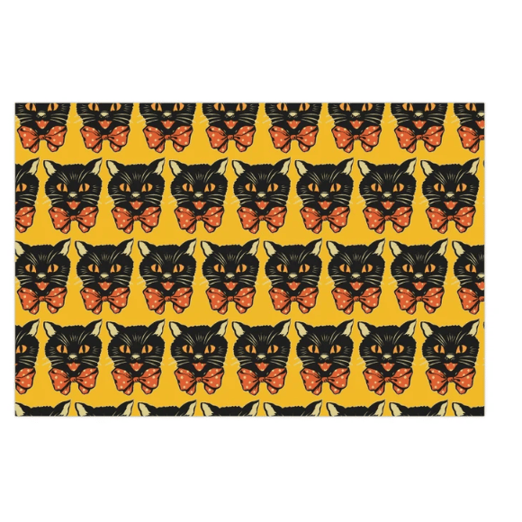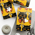 Retro Black Cat Halloween Wrapping Paper—Vintage Style with Bowties and Witchcraft Design, Perfect for Cat Lover Gifts and Witchy Gift Wrap.